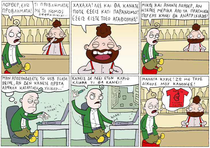 Μα καλά δε βλέπει οτι αυτή η γραβάτα δεν πάει με το ριγέ πουκάμισο?